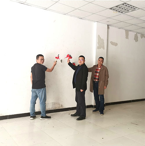 下午16时,公司党支部书记、董事长崔勇、总经理白冷、质量负责人王腾飞手握开工锤分别击打墙角,寓意“开工动土”,新办公大楼即日起正式开始装修!预计装修工期为三个月,届时公司将整体搬迁至重庆市南岸经开区米兰路3号。