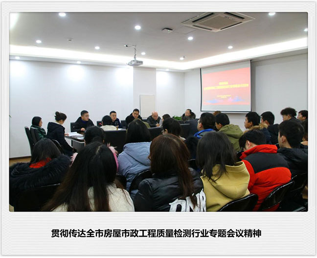 2020年12月28日上午10时,公司召开“贯彻传达全市房屋市政工程质量检测行业专题会议精神及签订工程质量检测人员规范从业承诺书”,公司全体人员参会。